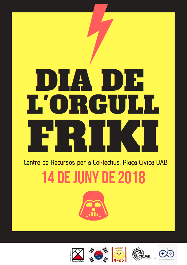 Ja queda poc pel “Dia de l’orgull Friki”, una cafeta organitzada per Korean Club, CRUAB, Gamers UAB i Ramen Club, amb la col·laboració de Dinamització Comunitària. Aquesta tindrà lloc el dijous 14 de juny de 2018.