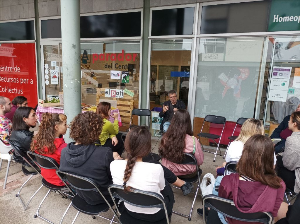 L’Hortet de la UAB porta en Pep Espluga, professor de la UAB, per parlar d’agroecologia. Malgrat la pluja, s’aconsegueix fer la xerrada davant del Centre de Recursos per a col·lectius.