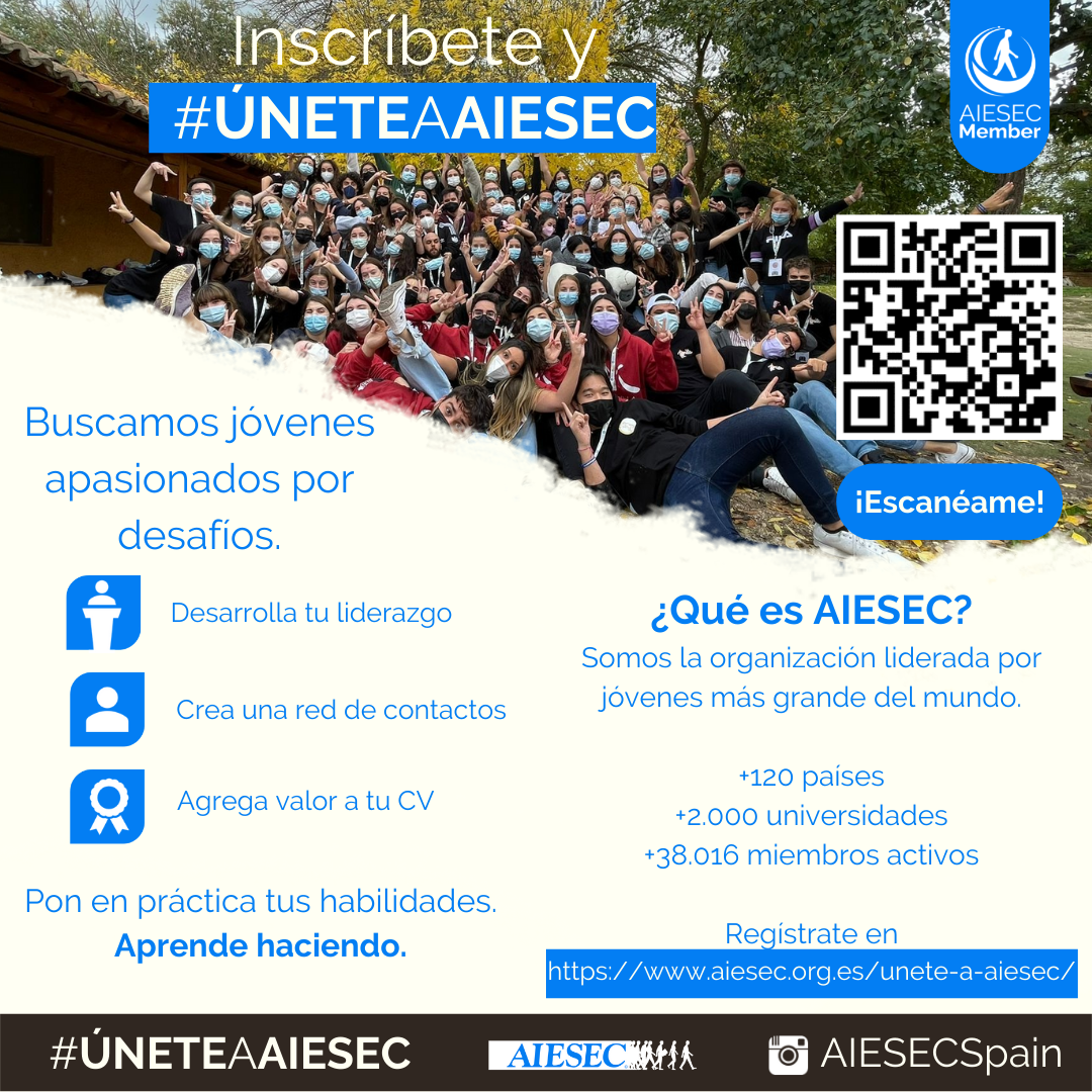 AIESEC és l’organització liderada per joves més gran del món, present a més de 110 països. Treballen voluntàriament per desenvolupar el lideratge dels joves a través d’experiències de voluntariat o pràctiques laborals internacionals.