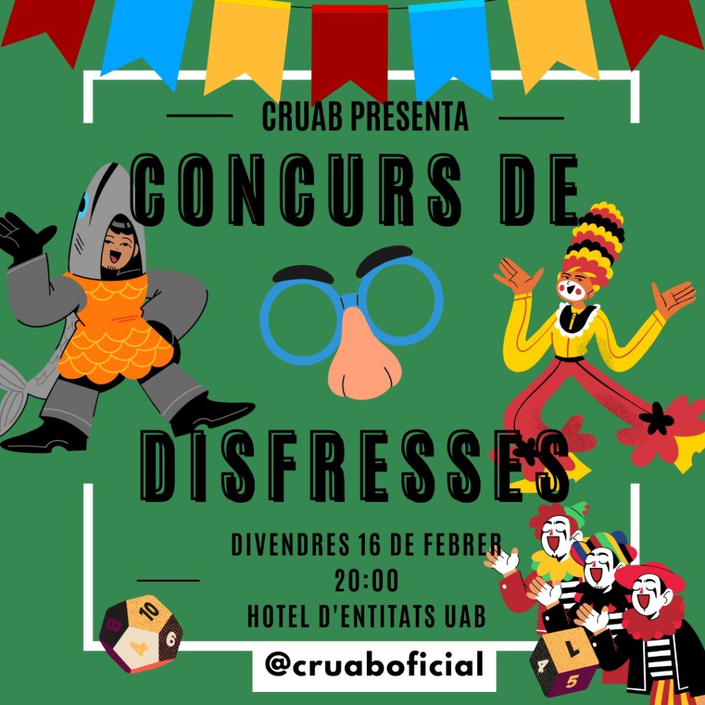Aquest divendres tornen les Nits Lúdiques del Club de Rol de la UAB! Serà aquest divendres 16 de febrer de 18h a 03h a l’Hotel d’Entitats de la UAB. Aquesta vegada, emmarcat en la celebració de Carnestoltes, el CRUAB ens porten un concurs de disfresses.