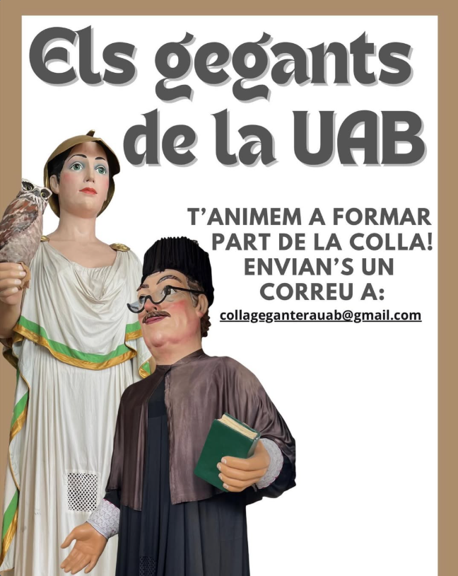 De gent gegantera n’hi ha per tot el campus. Els gegants no tenen el mateix reconeixement, tant nacional com internacional, que els castellers (i ho demostra el fet que la UAB és l’única universitat catalana amb gegants), i molt segurament això ha fet que no existís fins ara cap colla gegantera.