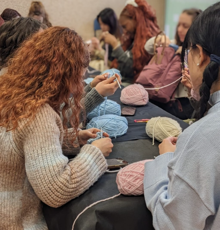 Més enllà del component manual, el ganxet és una activitat que afavoreix la concentració, la calma i el benestar emocional. En un entorn universitari sovint marcat per la pressa, els exàmens i les pantalles, poder aturar-se una estona per treballar amb fil i agulles és una manera senzilla però poderosa de desconnectar i cuidar-se. A més, el format de taller col·lectiu crea un ambient acollidor que facilita la conversa, l’intercanvi d’experiències i la construcció de comunitat.