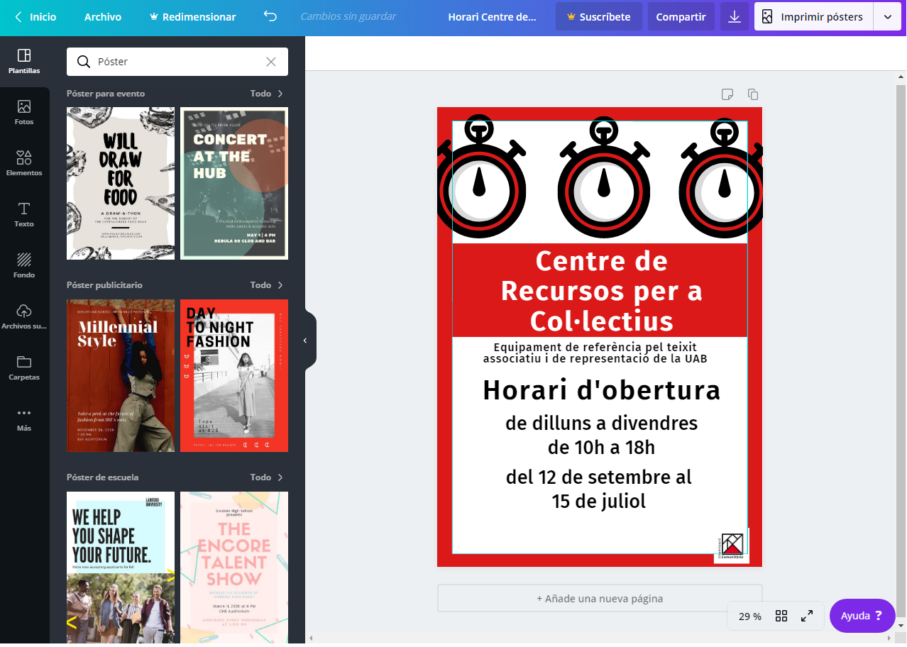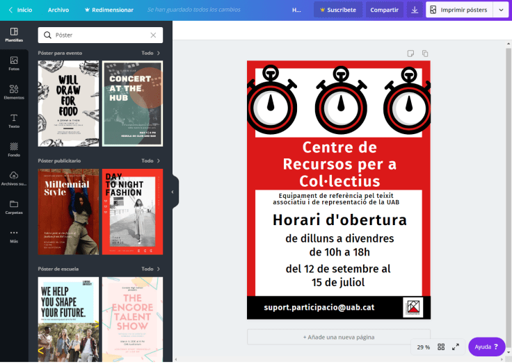 Un cop ja tenim el nostre cartell enllestit, podem descarregar-lo en PDF, JPG o PNG.
