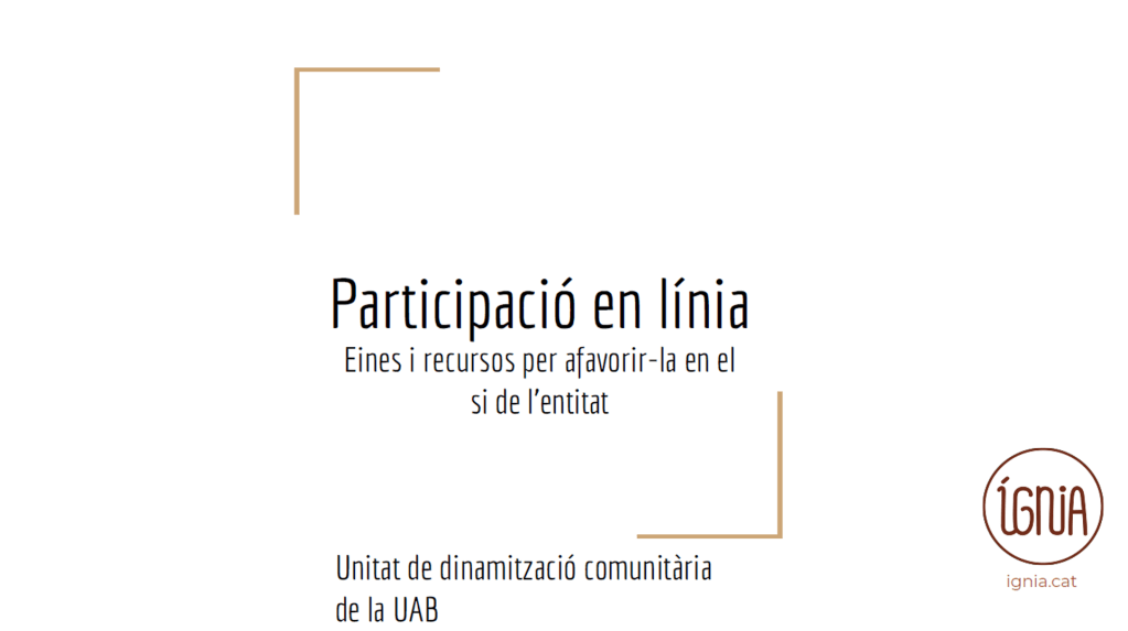 En aquest apartat podreu trobar la presentació amb tots els materials de la formació “Millorem la participació en línia” impartida per l’Emma Torres i la Clara Gené de l’associació Ígnia.