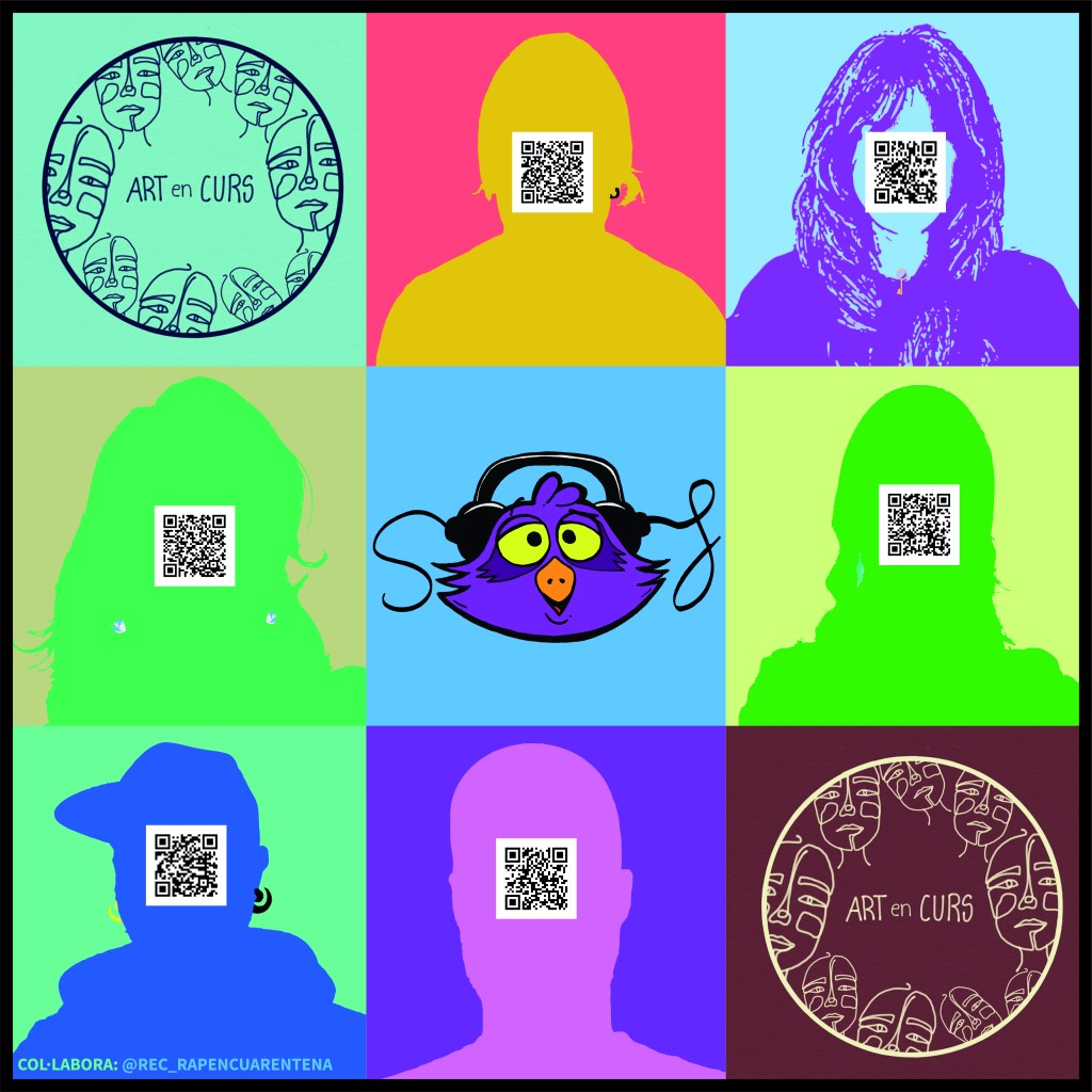 El col·lectiu Artencurs ha creat aquest aparador en forma de collage per donar a conèixer tant el seus membres com els seus projectes actuals. En cada quadrat hi ha un codi bidi que us conduirà a una de les seves pàgines i a les seves xarxes socials.