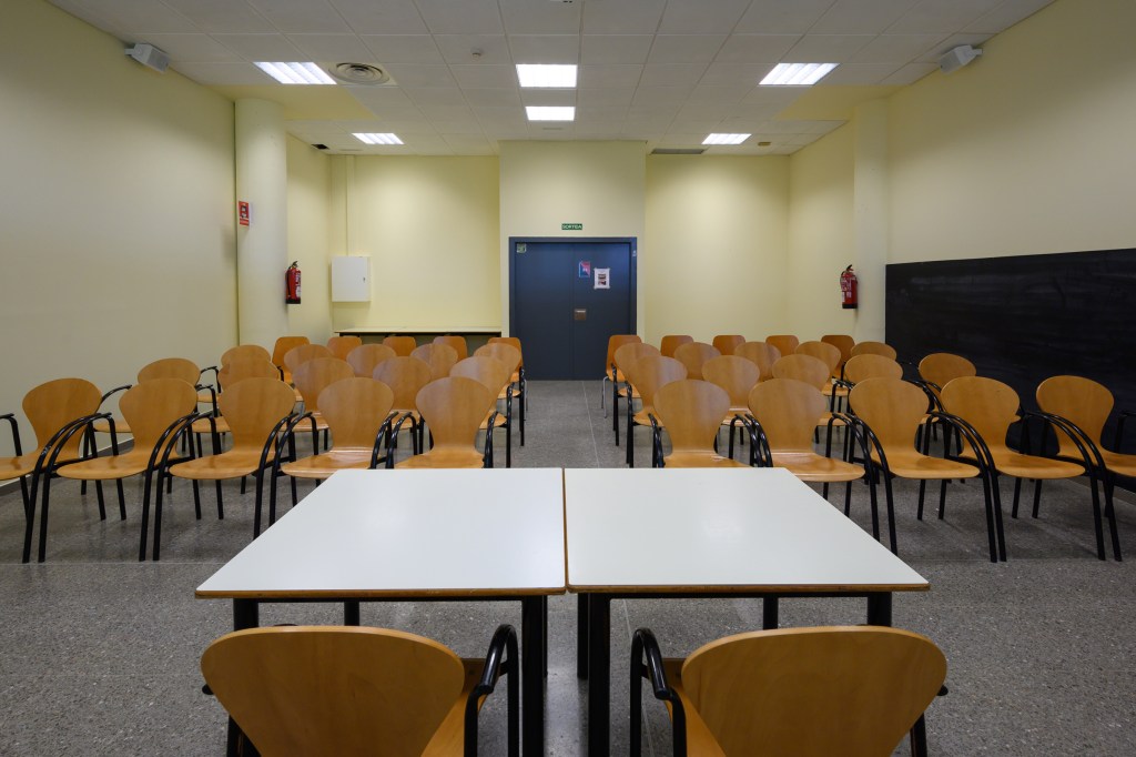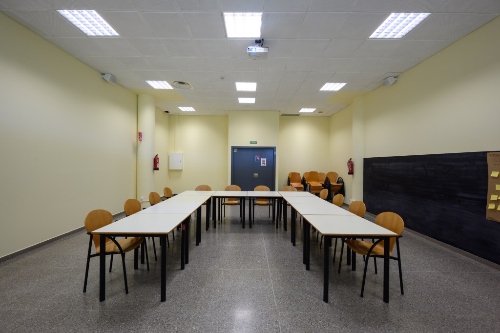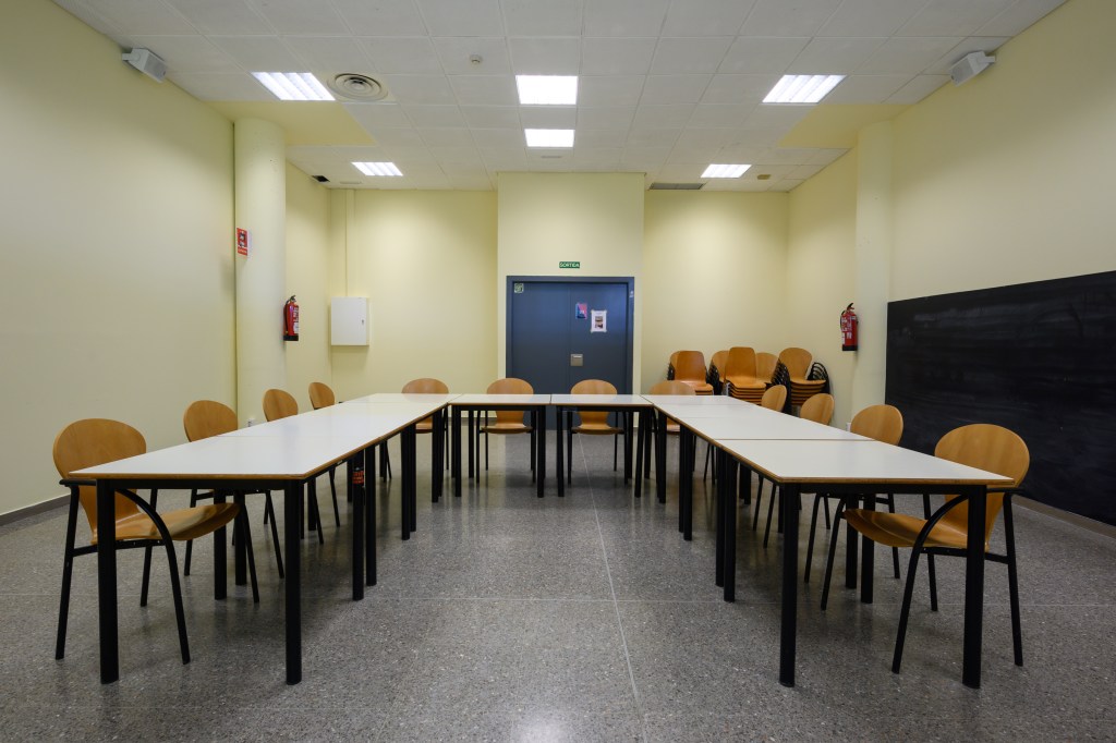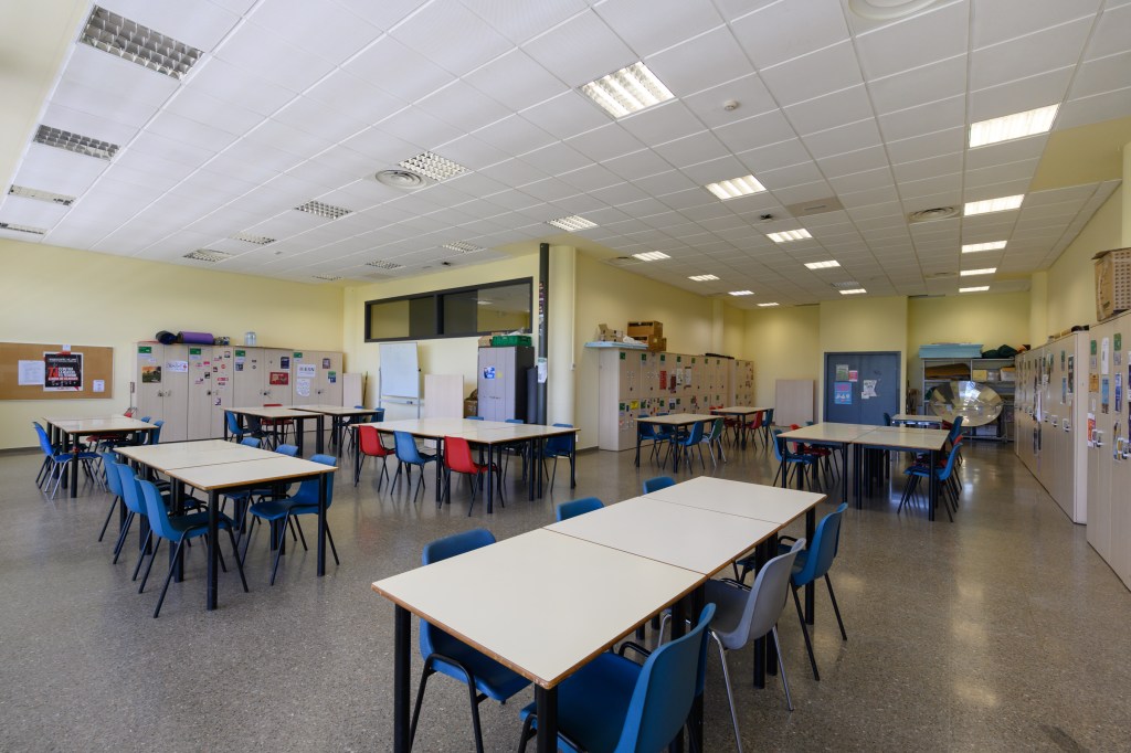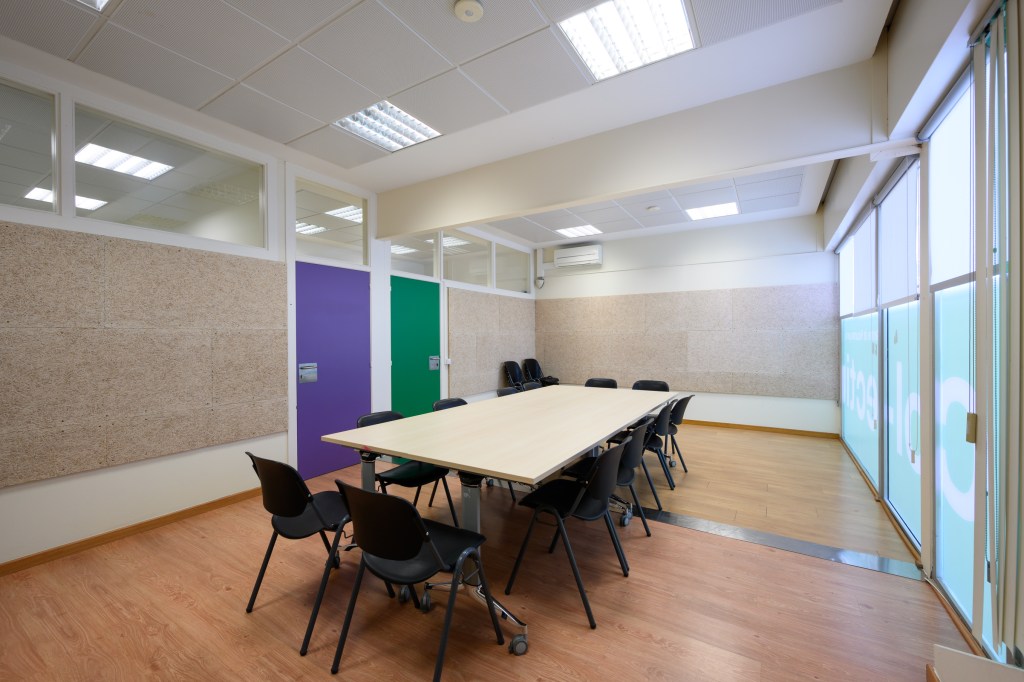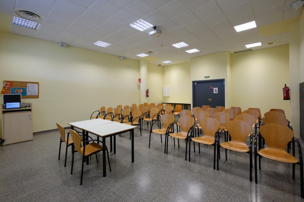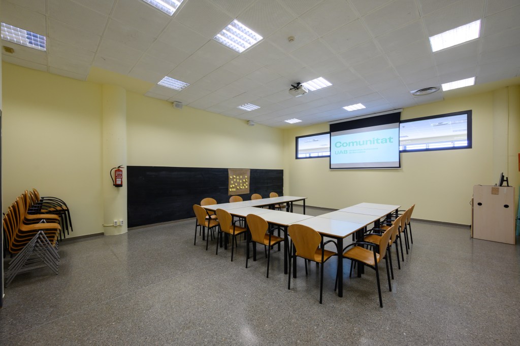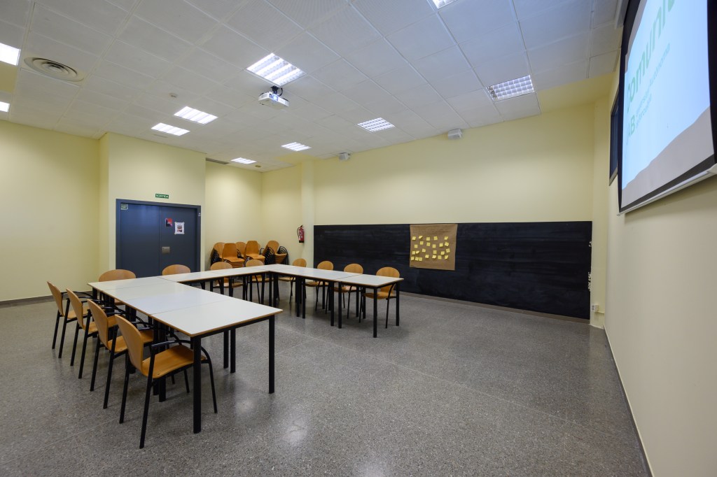 Sala polivalent equipada amb taules abatibles i pissarra. La sala està coberta de plaques insonoritzadores per a garantir el correcte desenvolupament d’activitats musicals i/o artístiques.