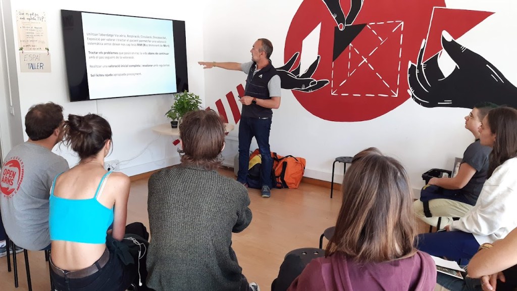 El primer taller de primers auxilis que vam organitzar al Centre de Recursos va ser una formació de 2h en què un tècnic de la FEEC (Federació d’Entitats Excursionistes de Catalunya) ens va explicar quins son els principis teòrics i pràctics que cal aplicar davant d’una situació d’accident.